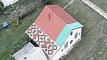 Флаг Республики Беларусь размером 13 на 10 метров, виден с высоты птичьего палёта. Нарисован вручную на шиферной крыше по адресу: улица Центральная, дом 64[6].
