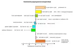 Мелкодисперсные частицы углерода (сажа) по своему влиянию на рост температуры уступают только CO2. Их воздействие зависит от того, находятся ли они в атмосфере или на поверхности земли. В атмосфере они поглощают солнечную радиацию, нагревая воздух и охлаждая поверхность. В изолированных районах с высокой концентрацией сажи, например, в сельских районах Индии, до 50 % потепления у поверхности земли маскируется облаками из сажи[45]. При выпадении на поверхность, особенно на ледники или на снег и лёд в Арктике, частицы сажи приводят к нагреву поверхности за счёт снижения её альбедо[46].