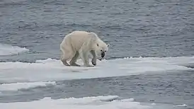 Потепление климата может привести к смещению ареалов биологических видов к полярным зонам и увеличить вероятность вымирания малочисленных видов — обитателей прибрежных зон и островов[106]. В 2002 году биолог Э. О. Уилсон подсчитал, что при сохранении текущих темпов антропогенного разрушения биосферы половина всех видов растений и животных на Земле исчезнет в течение 100 лет[107]. Текущие темпы вымирания видов оцениваются в 100—1000 «фоновых» значений скорости вымирания, определяемых эволюционными процессами[108], тогда как будущие темпы, вероятно, окажутся в 10 000 раз выше[109]. Согласно обзору 2003 года, проведенному в 14 исследовательских центрах по биоразнообразию, из-за изменения климата к 2050 году 15—37 % наземных видов живых существ «подлежат исчезновению»[110][111]. Экологически богатые регионы, которым угрожают наибольшие потери, находятся на юге Африки и в бассейне Карибского моря[112].