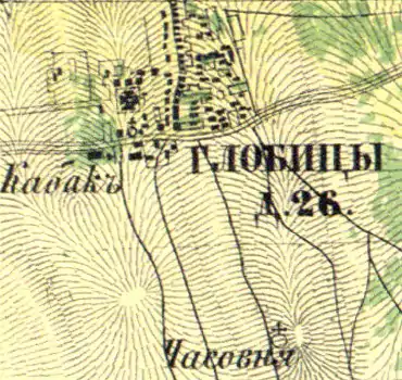 ГЛОБИЦЫ — село бывшее владельческое, дворов — 32, жителей — 182; Волостное правление, церковь православная, часовня, лавка, постоялый двор, трактир, ярмарка 16 августа. (1885 год)[19]