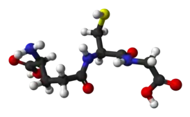 Глутатион (2-амино-5-{[2-[(карбоксиметил)амино]-1-(меркаптометил)-2-оксоэтил]амино}-5-оксопентаноевая кислота, англ. glutathione, GSH) — это трипептид γ-глутамилцистеинилглицин. Глутатион содержит необычную пептидную связь между аминогруппой цистеина и карбоксильной группой боковой цепи глутамата. Значение глутатиона в клетке определяется его антиоксидантными свойствами. Фактически глутатион не только защищает клетку от токсичных свободных радикалов, но и в целом определяет окислительно-восстановительные характеристики внутриклеточной среды[1].