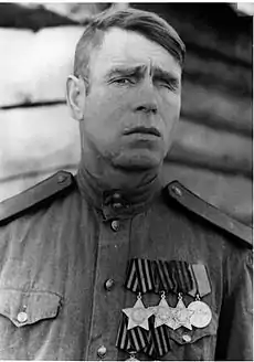 В 1941 году призван в армию по мобилизации, зачислен в 77-й стрелковый полк. Участвовал в боях у города Пушкин и под Новгородом. В одном из боёв преодолел нейтральную полосу и уничтожил пулемётную точку врага, за что был награждён медалью «За отвагу»[3].