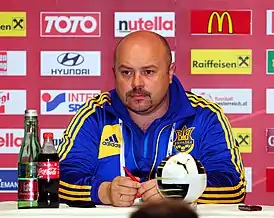 ![]() Глывинский на пресс-конференции после матча Австрия—Украина (1 июня 2012 года) | |