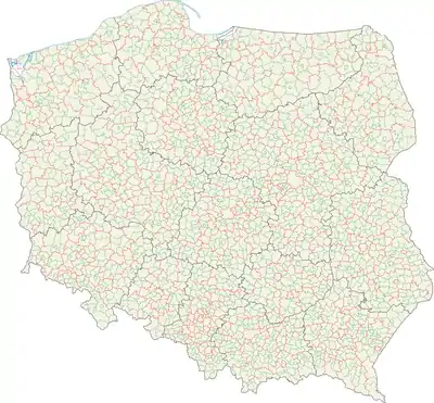 - Сельская гмина (gmina wiejska) — состоит только из деревень и сельской местности.