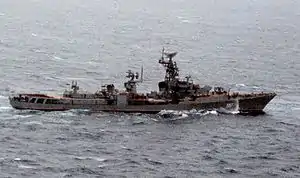 ![]() Большой ракетный корабль «Гневный» на Тихом океане. |
