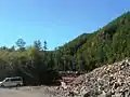 Ландшафтные работы на берегу реки Гобилли - сопка срыта и выровнена под полотно дороги.