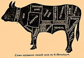 Из различных частей туши получается разная по кулинарным свойствам говядина. На отдельные части туша разделывается при первичной обработке[4].