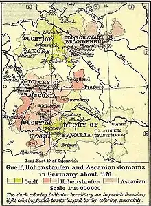 С возвышением дома Гогенштауфенов ещё сильнее разгорелась старая вражда Вельфов против Гогенштауфенов, не прекращавшаяся и при преемнике Конрада, его племяннике (сыне Фридриха Одноглазого) Фридрихе I Барбароссе.