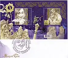 - Зчіпка 200-річчя від дня народження Миколи Гоголя (1809—1852) (укр.) (недоступная ссылка — история ). Марки. Дирекція розроблення знаків поштової оплати. Дата обращения: 3 апреля 2009. (недоступная ссылка)