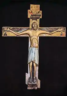 Крест представляет собой резное расписанное изображение Иисуса Христа в человеческий рост. На верхнем перекрестье есть греческие слова «ставру икон», что означает «образ Креста». Сам образ вырезан из липового дерева. Многие детали указывают, что этот Крест был создан в ромейской грекоязычной среде.