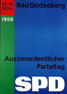 Годесбергская программа была принята на внеочередном партийном съезде СДПГ в Бад-Годесберге 15 ноября 1959 года и ознаменовала смену курса руководства СДПГ от социалистической рабочей партии к так называемой «народной партии» (Volkspartei). Ряд основных положений Годесбергской программы действителен для СДПГ и по сегодняшний день — признание рыночного хозяйства, поддержка усиления бундесвера и претензии на роль «народной партии».