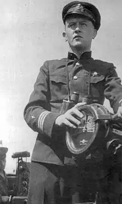 ![]() Командир эсминца «Бойкий» капитан 3-го ранга Г. Ф. Годлевский на мостике, 1942 год | |