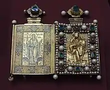 - В этот период на Руси получила распространение двойная икона «Феодор Стратилат и великомученица Ирина». Распространение этих икон связано с тем, что эти мученики являлись тезоименитыми святыми царя и царицы. По всей России были построены многочисленные церкви в честь святых Феодора и Ирины, а также открыты приделы в храмах (подробно см. Иконография Феодора Стратилата#Феодор Стратилат и великомученица Ирина)[9].