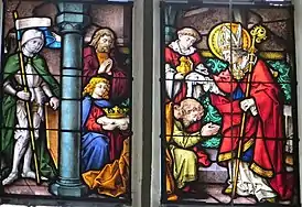![]() Крещение Гозберта святым Килианом. Витраж из церкви Святой Марии в Герольцхофене (1905 год) | |