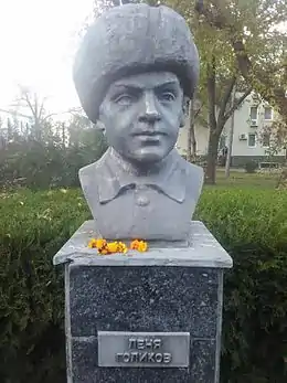 - Памятник Лёне Голикову установлен в Евпатории — территория бывшего пионерского лагеря «Золотой Берег».