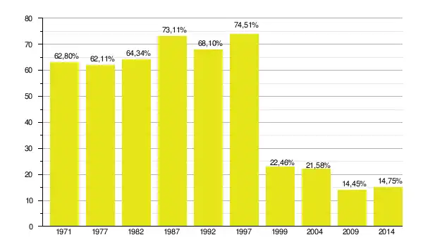 Поддержка партии на парламентских выборах