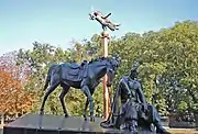 На фотографии справа показан современный, восстановленный, памятник императрице Екатерине.