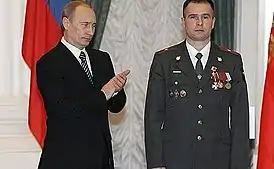 ![]() В Кремле на вручении Золотой Звезды Героя Российской Федерации (21 февраля 2008 года) | |