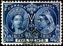 К 60-летию правления (англ. Diamond Jubilee) королевы Виктории в 1897 году Канадская конфедерация выпустила коммеморативную марку с изображением «головы Шалона» и более свежим портретом кисти Генриха фон Ангели, размещёнными соответственно в двух овалах.