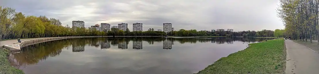 Самый крупный пруд Головинского комплекса. Его площадь составляет 7,5 га, длина — 510 метров, ширина — 270 метров[16]. Берега с южной, западной и восточной стороны естественные, в северной части — искусственные, укреплены железобетонными плитами, имеют плотину с водосбросом[17].