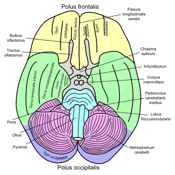 - обонятельная луковица (проходит обонятельный нерв)