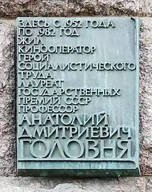Анато́лий Дми́триевич Головня́ (1900—1982) — советский кинооператор, теоретик кино, педагог. Герой Социалистического Труда (1980). Заслуженный деятель искусств РСФСР (1935), доктор искусствоведения (1966). Лауреат двух Сталинских премий (1947, 1951). Член ВКП(б) с 1944 года.