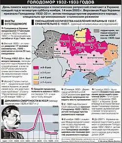 Голодомор[1] — массовый голод, охвативший в 1932—1933 годах всю территорию Украинской ССР в существовавших на тот период границах[2][3] и повлёкший многомиллионные человеческие жертвы.