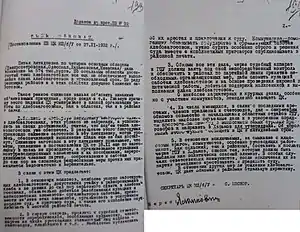 - 6 декабря 1932 г.: ПОСТАНОВЛЕНИЕ СОВНАРКОМА УССР и ЦК КПбУ О ЗАНЕСЕНИИ НА ЧЕРНУЮ ДОСКУ СЕЛ, ЗЛОСТНО САБОТИРУЮЩИХ ХЛЕБОЗАГОТОВКИ (фотокопия, см. также текст на английском