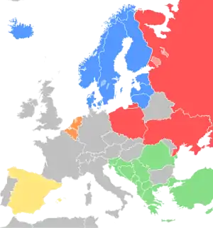 Пиренейский блок Блок Бенилюкса Скандинавский блок Постсоветский блок Балканский блок