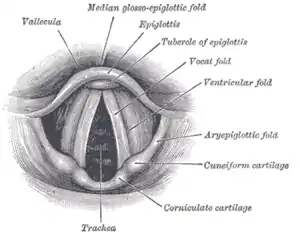 Также называют вестибулярные складки или складки преддверия — две складки слизистой оболочки, которые покрывают подслизистую ткань и небольшой мышечный пучок; в норме ложные голосовые складки принимают некоторое участие при смыкании и размыкании голосовой щели, но они двигаются вяло и не подходят вплотную друг к другу. Ложные голосовые складки приобретают своё значение при выработке ложносвязочного голоса и гортанном пении.
