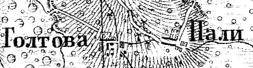 ГОЛТОВА — деревня владельческая при колодцах, число дворов — 22, число жителей: 67 м. п., 19 ж. п.; Часовня православная[6]. (1862 год)