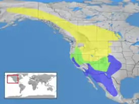 Птица живёт летом на альпийских лугах и в горных ландшафтах на высоте свыше 1500 м на западе Северной Америки, мигрируя зимой на низменность или в Мексику.