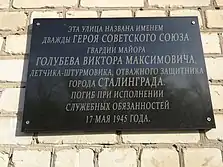 - В городе-герое Волгограде именем Голубева названа улица в южном районе города, где на одном из домов установлена мемориальная доска.