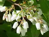 Цветёт в мае. Кистевидные соцветия расположены на концах побегов. Верхушечные грозди открываются раньше, чем боковые. Бутоны розовато-белые. Цветки колокольчатые, с 4—5 отогнутыми зубцами, белые или бледно-розовые, длиной до 1 см, с двойным околоцветником. Венчик сростнолепестный. В среднем в кистях 8-10 цветков. Опыление происходит с помощью насекомых.