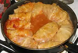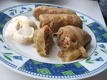 Голубцы́ — блюдо, распространённое в разных кухнях мира, представляющее собой мясной или овощной фарш с отваренными рисом и/или гречневой крупой, завёрнутый в капустные листья. Существуют разновидности с различными начинками. Блюда, состоящие из начинки, завёрнутой в капустный лист, широко распространены в Северной, Центральной и Восточной Европе, в Турции, Азербайджане, Армении, на Балканах, в Казахстане, Молдавии, странах Средней Азии, Северной Африке, Китае и Корее.
