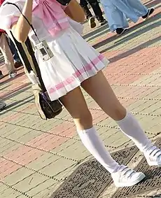 Гольфы можно носить с короткой юбкой, с шортами либо с коротким платьем.