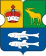 Щит московской формы полурассечён и пересечён. В первом золотом поле красная княжеская шапка. Во втором зелёном поле стоящий золотой лось. В третьем голубом поле два серебряных гольяна: один над другим.