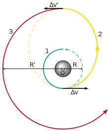 Расчёт необходимых приращений скорости можно произвести двумя путями: задавшись отношением радиусов конечной и исходной орбит или задавшись орбитальными скоростями исходной и конечной орбит. Второй путь проще, если заведомо известны орбитальные скорости орбит.