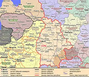 После смены власти в Российской империи территория успела побывать под оккупацией германской армии и войск Украинской Народной Республики, а до 1926 года часть её территории входила в состав РСФСР. К мирной жизни население Гомельского края вернулось в 1920 году. За период гражданской войны и иностранной интервенции объём промышленного производства в Гомельской области сократился в 7 раз и составил 14 % от уровня 1913 года[6][7].