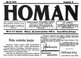 Выходила в Вильне два раза в неделю с 15 февраля 1916 года по 24 декабря 1918 года на белорусском языке латиницей, с № 61 11 сентября 1916 года также кириллицей[1], с заглавиями «Гоман» и «Homan».