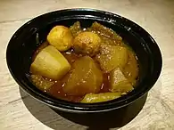 Гонконгская кухня — совокупность кулинарных традиций населения Гонконга. В городе преобладает общественное питание, чему во многом способствуют как занятость населения, так и особенности жилищ (из-за дороговизны недвижимости в Гонконге очень маленькие квартиры, во многих из них вообще нет кухонь). Большинство горожан предпочитает питаться в ресторанах и уличных закусочных, которых в Гонконге насчитывается более 14 тысяч. Представлены практически все кулинарные стили и течения, но преобладает кантонская кухня (юэцай), кулинарные традиции которой являются родными для большинства местного населения[1][2][3][4][5].