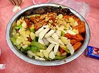 Довольно распространена курица в смеси перцев и соусе тауси. Курицу маринуют в соевом соусе и рисовом вине, а тауси (тоси) готовят из ферментированной и солёной чёрной сои, поэтому он и известен как «чёрный бобовый соус». Также тауси подают в качестве приправы с тушёным карпом, свиными рёбрышками и обжаренными овощами (особенно с горькой тыквой)[98][99].