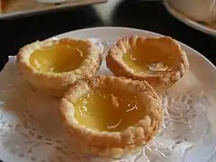 Среди кантонской выпечки в Гонконге популярен пирог возлюбленной или «пирог жены». Он имеет тонкую корку слоёного теста, а внутри находится начинка из восковой тыквы, миндальной пасты, кунжута и смеси пяти специй (аниса, гвоздики, кассии, сычуаньского перца и фенхеля). Также в Гонконге очень популярны сладкие хрустящие ананасовые булочки или болобау, которые запивают чаем с молоком, и пушистые булочки с пастой из семян лотоса. Они готовятся методом тушения измельчённых сушёных семян с добавлением карамелизованного сахара, растительного масла и яичных желтков. Кроме булочек с семенами лотоса, эту пасту добавляют также в пряники юэбин, баоцзы и сладкие димсамы (юэбины, или «лунные пряники», являются самым популярным десертом на празднике середины осени). Другими популярными начинками для выпечки служат красная бобовая паста, белая бобовая паста, чёрная соевая паста, чёрная кунжутовая паста и мунговая паста[78][129][130].