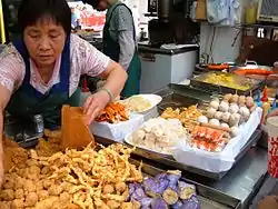 Среди десертов уличной кухни выделяются маленькие яичные пирожки и яичные вафли. Жареные пирожки получаются хрустящими сверху и пористыми изнутри и служат популярной закуской. Яичные вафли (по-кантонски кайтанчай) готовятся на уличных жаровнях из жидкого теста, залитого в специальные формы. Их подают горячими, с фруктами, ягодами, арахисовым маслом, кокосом или шоколадом[78][140][49].