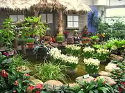 В демонстрационной зоне представлены популярные культивируемые растения различных видов и семей. Тематические показы проводятся на сменной сезонной основе, в течение года сменяется более 30 групп растений. Во влажной зоне представлено большое разнообразие растительности, происходящей из джунглей Юго-Восточной Азии, Южной Африки и Америки. Экземпляры сгруппированы согласно зональности и местам происхождения, а также экологическим особенностям и экономической ценности. Во влажной и сухой зонах установлено сложное оборудование, которое создаёт и поддерживает специальную климатическую среду — от засушливых до тропических областей (приборы регулируют температуру, влажность и освещение, а также распыляют водяной пар для поглощения солнечных лучей). Кроме того, в сухой зоне созданы искусственные скалы и миниатюрные каньоны, моделирующие среду обитания растений из засушливых областей[43].