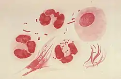 Заболевания: уретрит, цервицит, сальпингит, проктит, бактериемия, артрит, конъюнктивит (бленнорея), фарингит. Реже вызывают воспаление глотки и прямой кишки. Источник инфекции — больной человек. Возбудитель передаётся половым путём. При бленнорее заражение новорожденного происходит через инфицированные родовые пути матери. Род Neisseria включает более 20 видов: N. canis, N. cinerea, N. denitrificans, N. elongata, N. flavescens, N. gonorrhoeae, N. lactamica, N. macacae, N . meningitidis, N. mucosa, N. polysaccharea, N. sicca, N. subflava и др. Гонококки — грамотрицательные диплококки (от греч. diplo — двойной) бобовидной формы, располагаются парами, прилегая друг к другу вогнутой стороной (размером 1,25—1,0 х 0,7—0,8 мкм). Имеют нежную капсулу и пили. В гнойном отделяемом характерно расположение гонококков внутри и вне фагоцитирующих клеток — лейкоцитов (незавершённый фагоцитоз).
