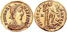 Фла́вий Гоно́рий А́вгуст (лат. Flavius Honorius Augustus; 9 сентября 384—15 августа 423) — первый западноримский император после окончательного разделения Римской империи на западную и восточную части. Сын императора Феодосия I[4]. Его правление — 395—423 годы — период торжества варваров, усиливающегося распада Западной Римской империи. При нём вестготы в 410 году захватили и разграбили Рим.