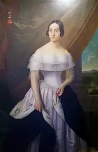 ![]() Баронесса Екатерина Дантес де Геккерен. Портрет работы Леона Жана-Батиста Сабатье (1838) | |