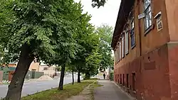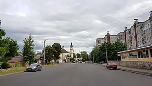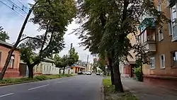 ![]() участок между улицами Киевская и Гоголя: слева усадебная застройка и Костёл Сошествия Святого Духа, справа многоэтажный жилой квартал | |