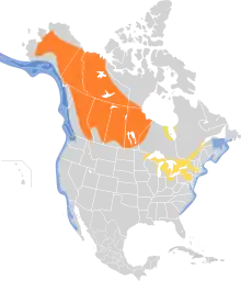 На территории Северной Америки ареал охватывает обширную территорию от западного побережья Аляски и центральной части Британской Колумбии на восток до юго-западного побережья Гудзонова залива и западного Онтарио. На север ареал доходит до арктического побережья, но начиная от залива Амундсена граница ареала, становясь северо-восточной, идёт к юго-западному побережью Гудзонова залива. Затем граница ареала направляет на юг до северного Вашингтона и центральной части Северной Дакоты. Предположительно также может гнездится на Лабрадоре и Ньюфаундленде.